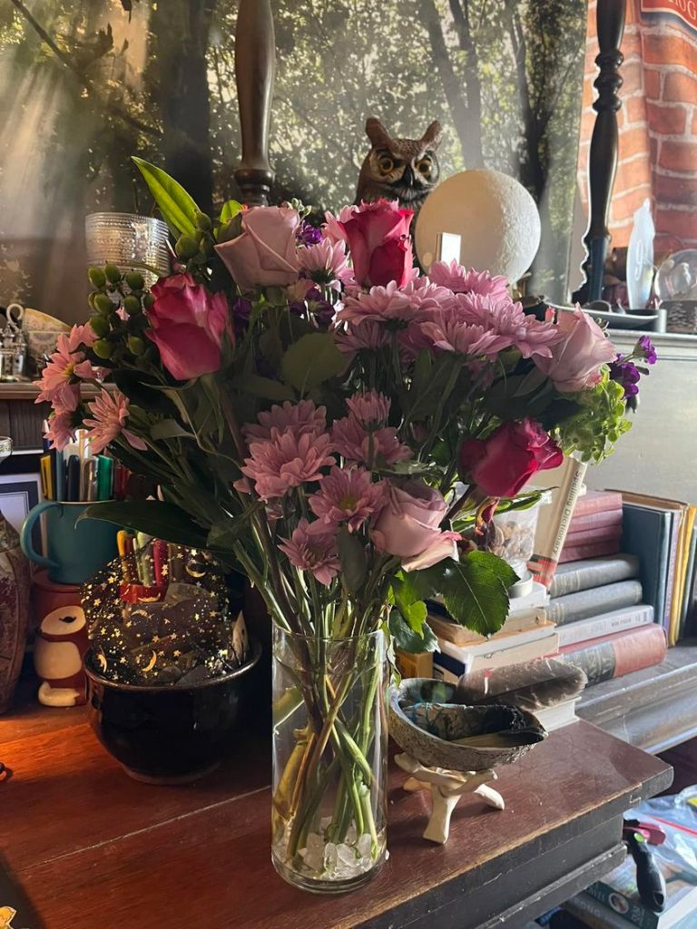 @Home Studio – Inspired by flowers Erica gave me to celebrate my first day of working in the corporate world (and I chose a Haiku style because I am currently reading a book about Haiku) – 29th poem of the year