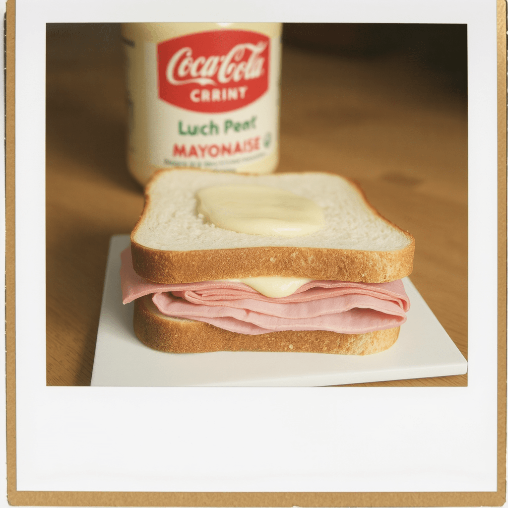 AI was not exactly sure what to do with the mayo. Coca Cola Mayo!!!lol